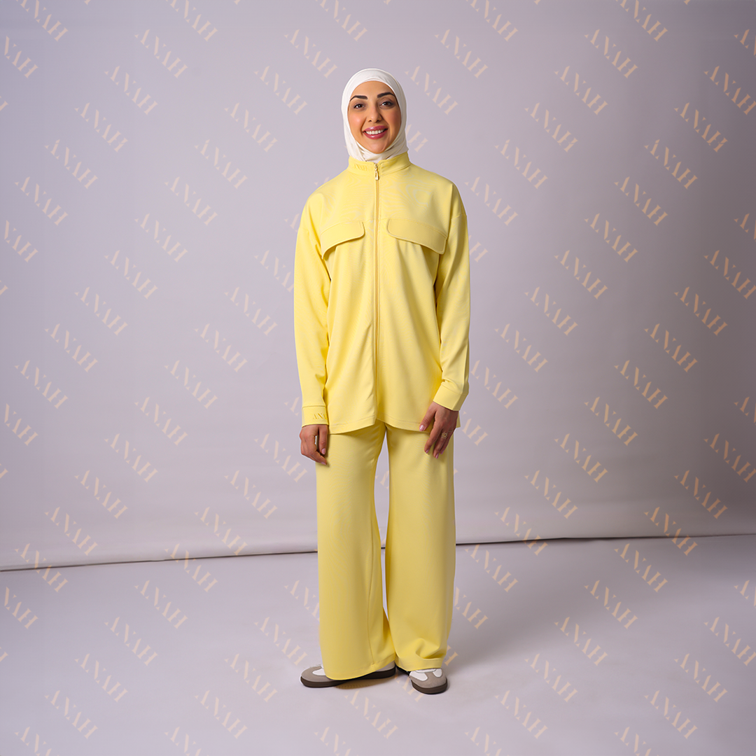 High-end belted zipper jacket made with premium soft fabric, Wide leg straight pants with comfortable elastic...