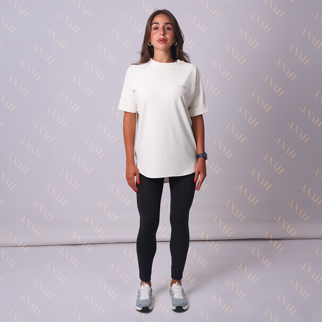 Printed Short sleeves round cut modest training top with folded edge and breathable high premium...
