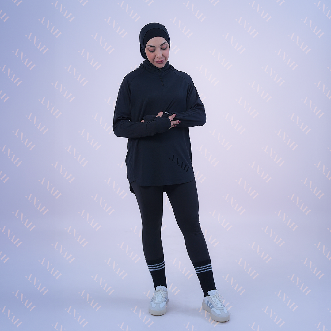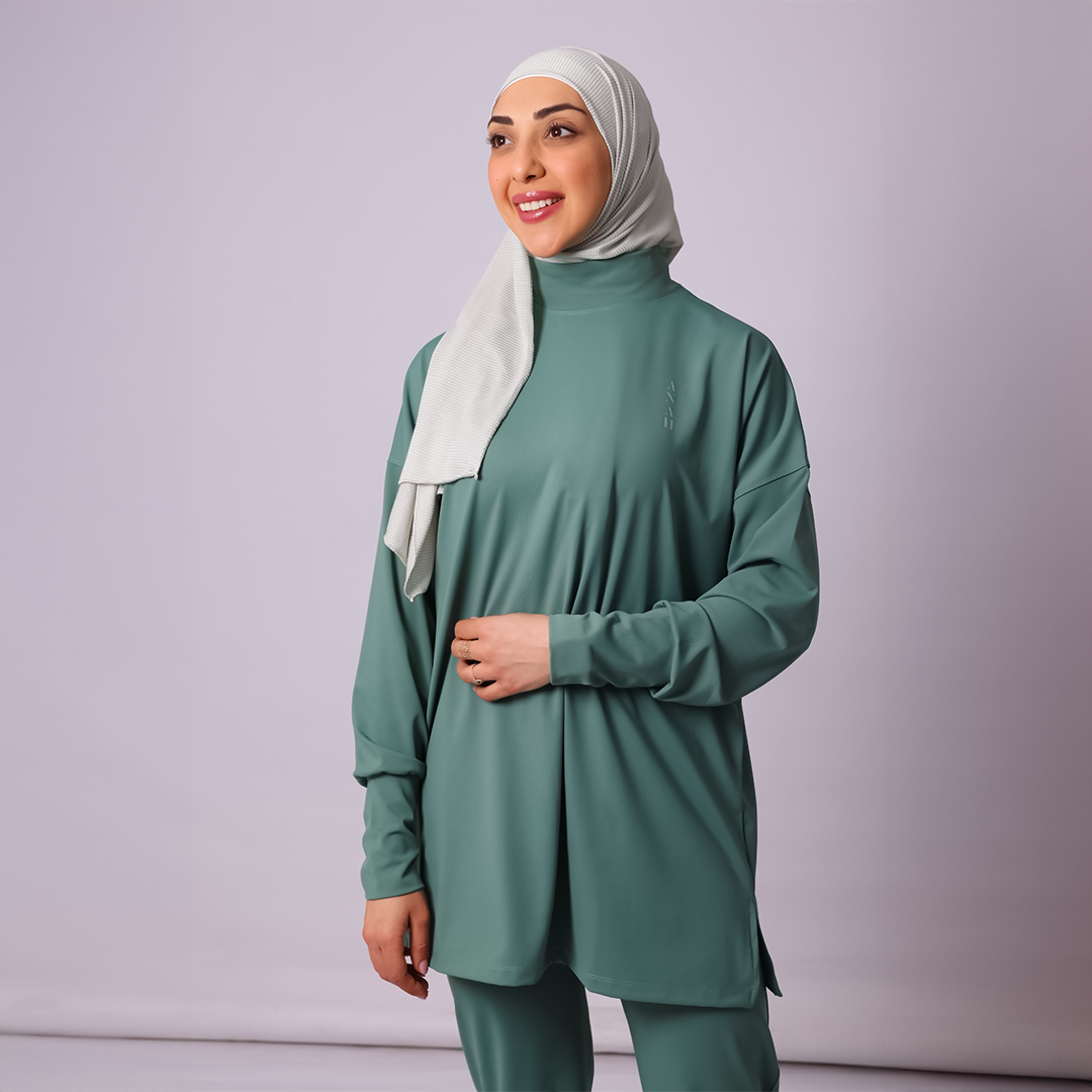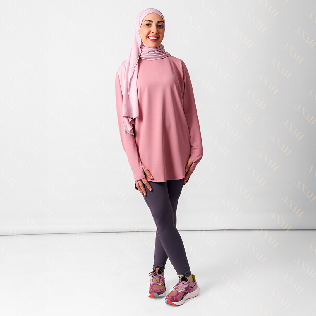 Printed long sleeves round cut modest training top with folded edge and breathable high premium...