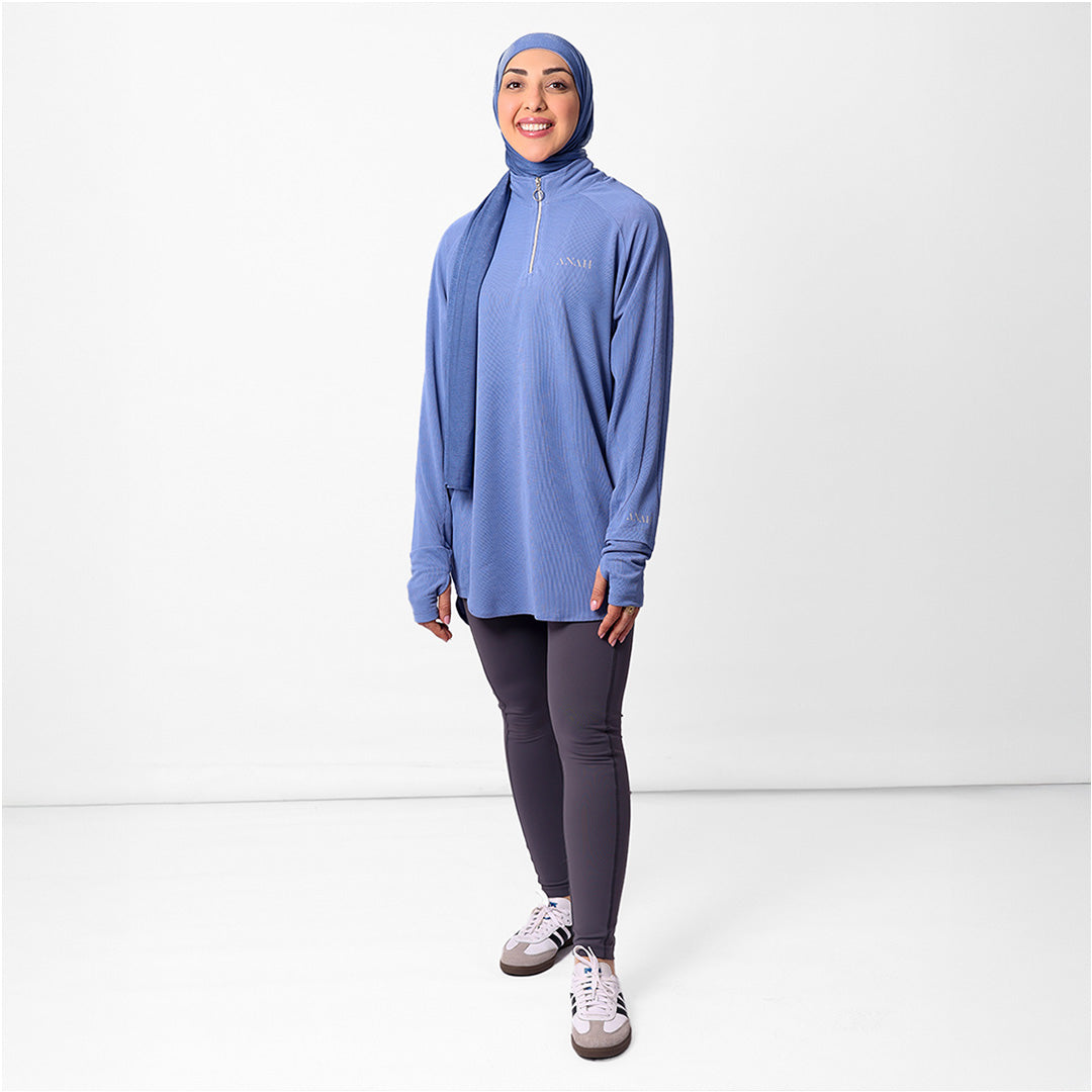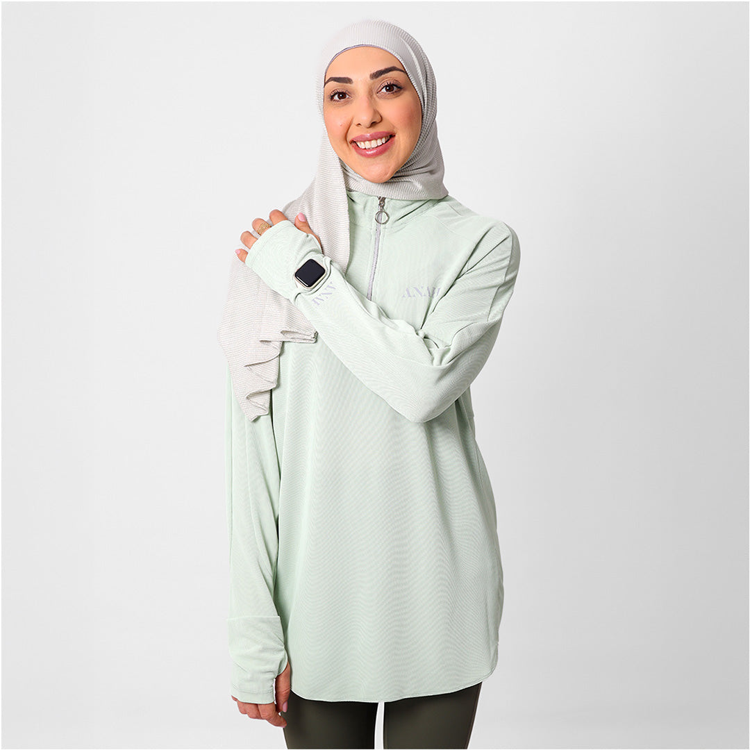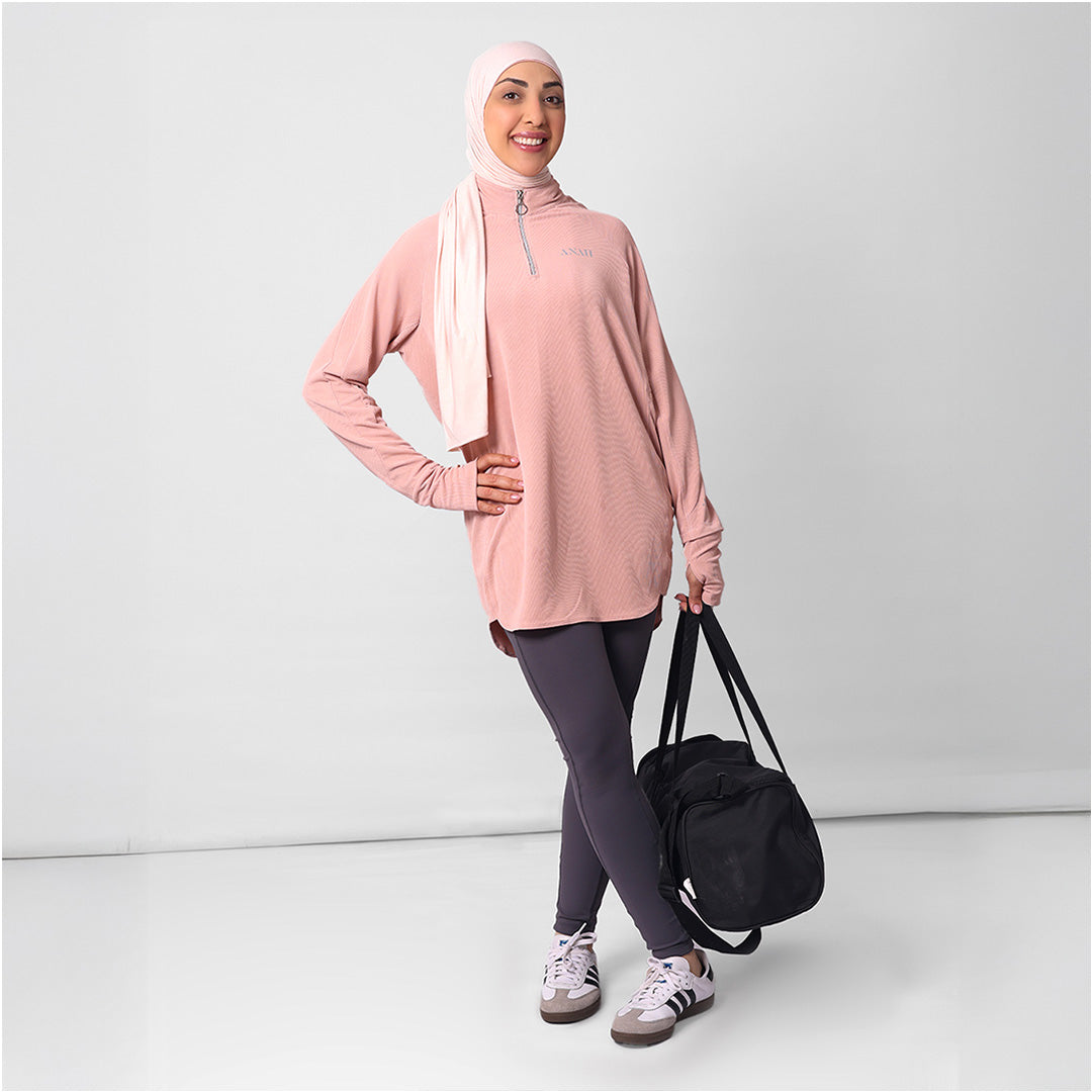 Printed long sleeves round cut modest training top with folded edge and breathable high premium...