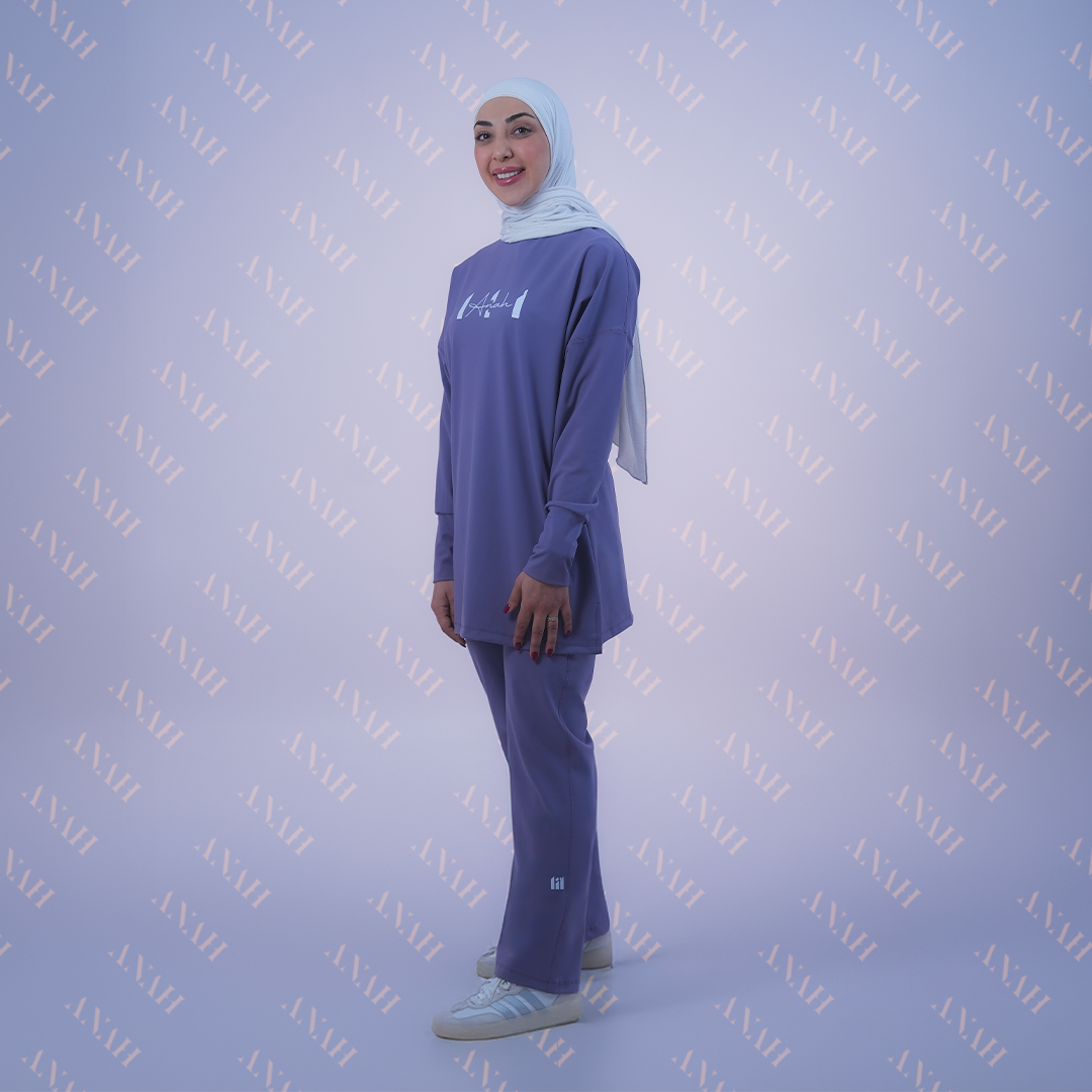 Styled Athletic top, made of premium sports wear material, with matching mini flare pants.