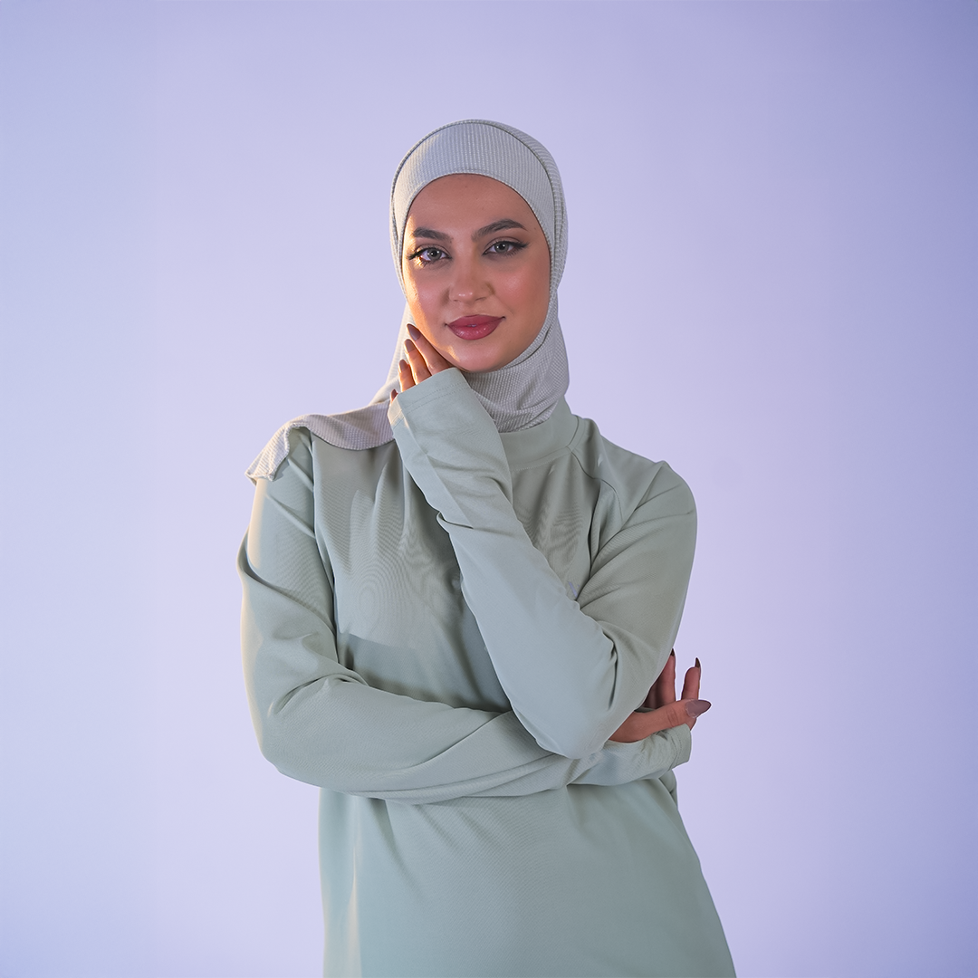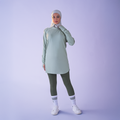 Printed long sleeves round cut modest training top with folded edge and breathable high premium fabric